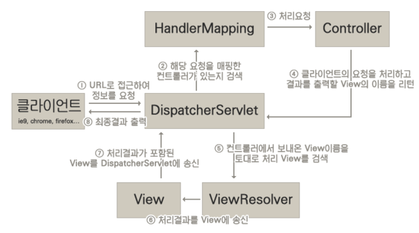 8.1 클라이언트가 해당 어플리케이션에 접근하면 접근한 URL 요청을 DispatcherServlet이 가로챔