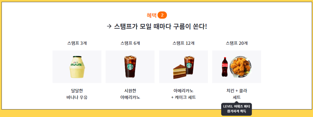 해당 스탬프를 모으면, 여러가지 혜택이 주어졌습니다.