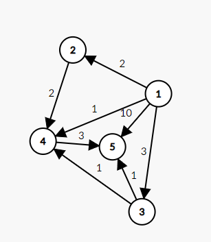 예제 입력은 1번에서 출발하여 5번까지 도착하는데 걸리는 최소 시간을 구하는 문제입니다.