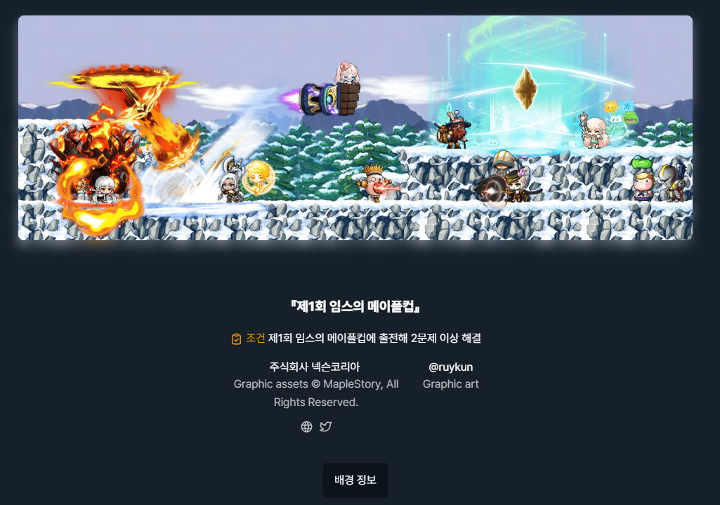 2023년 9월 8일 18시 ~ 21시까지 메이플스토리의 IP를 활용하는 비공식 대회인 제1회 임스의 메이플컵이 개최되었습니다.