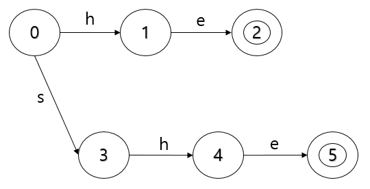shr이라는 단어를 찾고자 할 때, s,h를 통해 이동하여 4번 노드에 도착하였으나, i로 갈 수 있는 노드가 없게 됩니다.