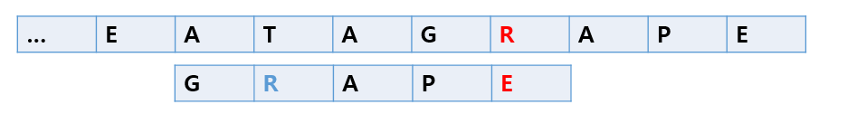 "EAT A GRAPE"의 문장에 "GRAPE"라는 단어가 매칭되는지 확인하는 과정에 대하여 설명해보겠습니다.