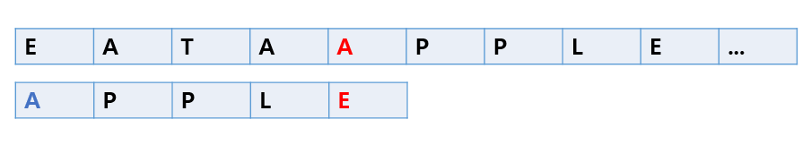 APPLE의 맨 뒤 단어인 E와 같은 위치에 있는 단어는 A로 서로 다르다는 것을 인식하였습니다.