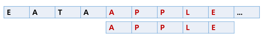 이후, A라는 단어가 찾고자 하는 APPLE 이라는 단어에 포함되어 있는지 확인하고, 포함되어 있다면 해당 위치로 이동을 시킵니다.